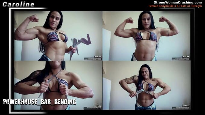 Watch Caroline show off her impressive strength by crushing Cucumber with her muscles! She makes it look easy, but this feat of strength takes a lot of power. See her muscles flex and show off her amazing strength!