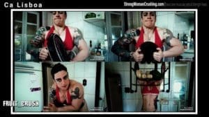 CaLisboaCa Lisboa, a powerhouse of strength and muscle, showcases her extraordinary abilities by effortlessly crushing a metal fruit basket and demolishing various metal objects. Prepare to be captivated by the raw power and mesmerizing display of female muscularity that will leave any man in awe.