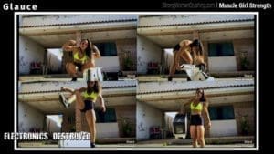 GilcunhaGil Cunha shows her super muscles in bikini and easily smashes some apples in her muscles.