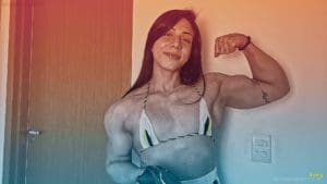 SamySamy shows her impressive muscular physique and bends some reinforced metal hangers, Watch as her muscles grows and get harder with the effort.