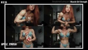 GilcunhaGil Cunha is unbelievable, she shows her gigantic muscles and superior strength smashing some apples over her biceps and pecs.