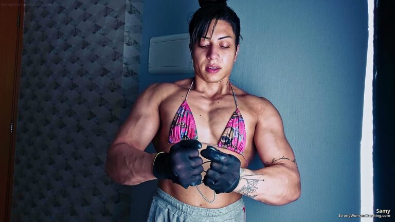 Jhey Display Her Powerful Muscles as She Bends Metal Effortlessly