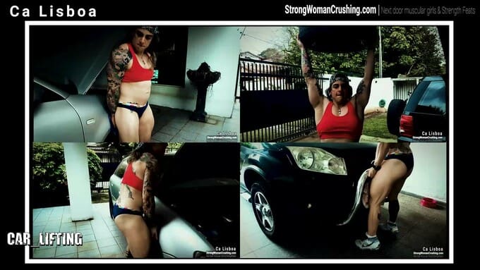 Watch NowCa Lisboa pulls her pickup and tries to lift it with her muscles