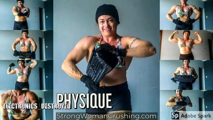 Ana Maromba shows her brute muscular arms by destroying a poor keyboard into pieces
