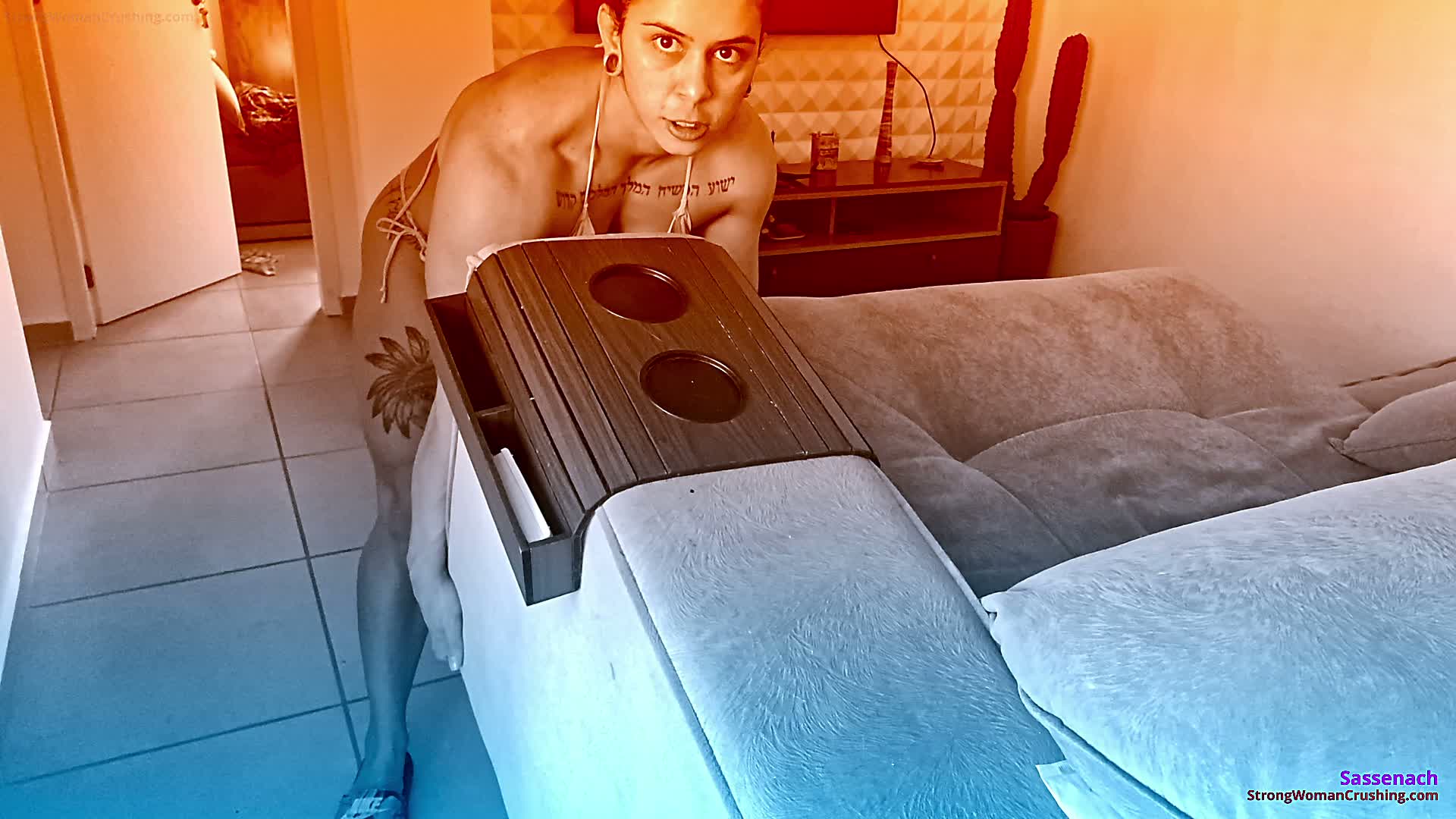 Ca Lisboa shows her immense strength by destroying a couch with her muscular arms