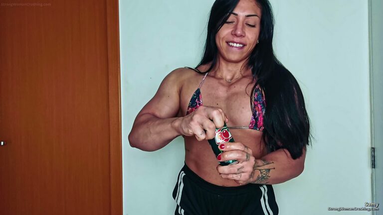 Watch these incredible female athletes flex their muscles while they crush and destroy soda cans! These videos showcase the impressive strength and power of these female bodies, sure to amaze viewers.