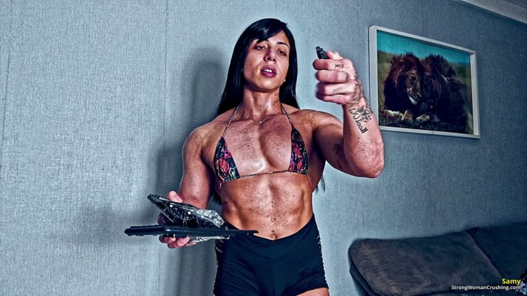 See muscular women wield the power to crush, break, and demolish cell phones! Witness ultimate strength exhibited as they annihilate these devices with ease. Get ready for an impressive show of muscles!