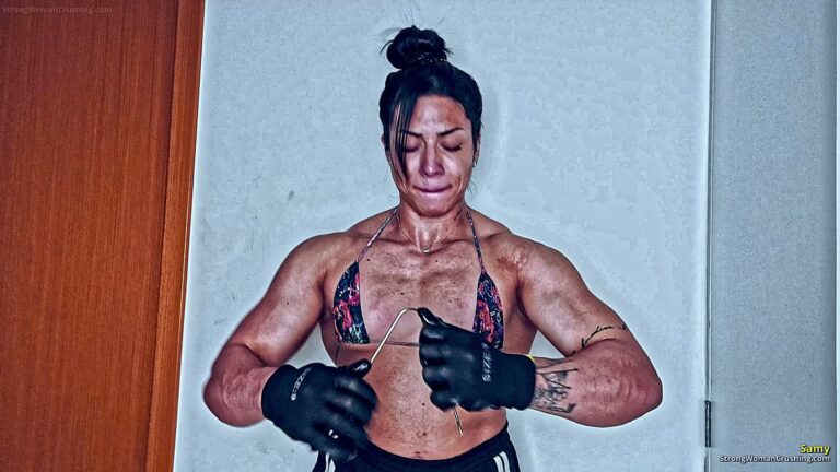 This video will mesmerize you with the incredible strength of a muscular woman! Watch how she bends a metal screwdriver with her bare hands, showing off her impressive physique! Be in awe as she displays her strength and muscles in this Unstoppable Screwdriver Bending video!