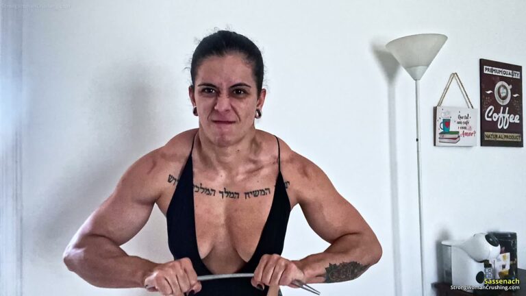 This video will mesmerize you with the incredible strength of a muscular woman! Watch how she bends a metal screwdriver with her bare hands, showing off her impressive physique! Be in awe as she displays her strength and muscles in this Unstoppable Screwdriver Bending video!